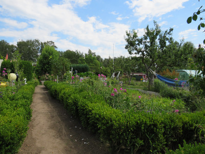 Anschließend wurde die Wettbewerbsjury durch die Anlage geführt. Es wurden alle 68 Gärten unter die Lupe genommen. Im Ge- meinschaftsgarten der Anlage wartete ein reichhaltiges Kuchenbuffet für die Teilneh- mer. Bei Kaffee, Tee und Kuchen wurde in lockerer Atmosphäre der Erlebnisgarten von unserer Projektleiterin Judith Koch vorge- stellt. Frederik Ernst stellte als wissenschaft- licher Mitarbeiter der Uni Rostock das Projekt der Studierenden im Erlebnisgarten vor. Uta Bach vom Amt für Stadtgrün der Hansestadt Rostock gab den Teilnehmern einen kurzen Einblick in das Kleingartenentwicklungskonzept, welches in diesem Jahr abgeschlossen wurde. Auch der Stadtverband und Landesverband gaben einen Einblick in ihrer Arbeit.